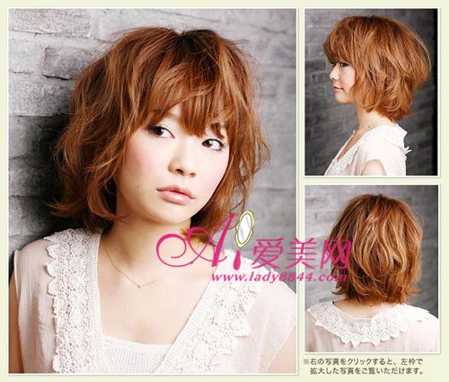 很多人為了打理方便都會將瀏海剪去,也有人認為長瀏海和短髮兩者不可兼得。而這款髮型給我們帶來了很好的示範。利用捲髮棒,將臉頰的頭髮弄成向內微捲的髮束,這樣顴骨兩側的頭髮和斜瀏海就能製造出小臉和俏麗的感覺。腦後垂的髮尾向外微捲,後輕抓頭髮,製造出蓬鬆感,背影時尚又不缺乏生氣!!